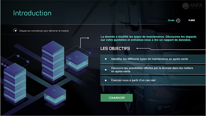 Manque de compréhension des enjeux économiques, réglementaires et opérationnels liés aux données des véhicules d'intervention. Concevoir un parcours e-learning reliant données, métiers terrain et perspectives sectorielles. Problématique